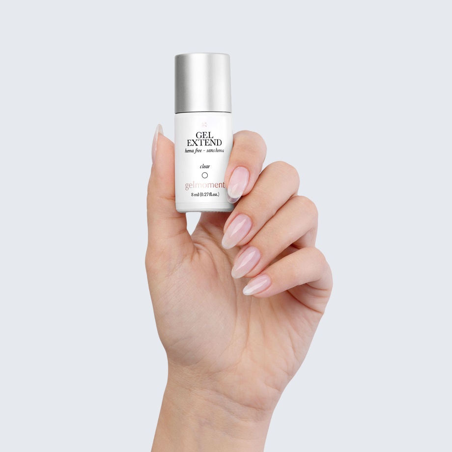 Gel Extend is a DIY product made of a high shine hema-free formula that lasts up to 21 days, for all levels, whether you are an expert or a beginner. This hard structure, high viscosity sculpting gel allows you to add length to your nails without the damaging effects of glue-on tips and acrylics. It can be used to add up to 2 mm of length to the natural nail, or to help reduce the occurrence of breakage in weak, cracked nails.